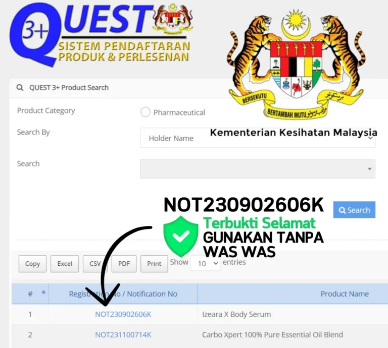 Serum Izeara memang dijamin selamat kerana semua bahan bahan premium yang digunakan mendapat kelulusan Kementerian Kesihatan Malaysia & amat baik utk kesihatan kulit utk jangka masa panjang .
